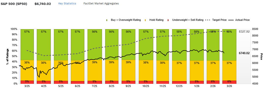 Analysts remain positive on the S&P500, with the 12 month target return being 23.5% above the current index level. Analysts can of course be incorrect. However, analyst predictions are indicative.